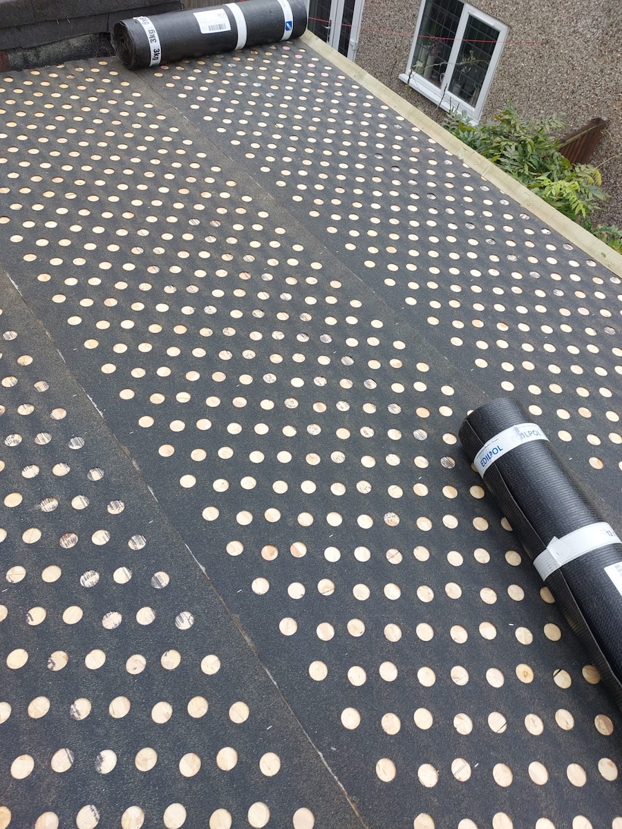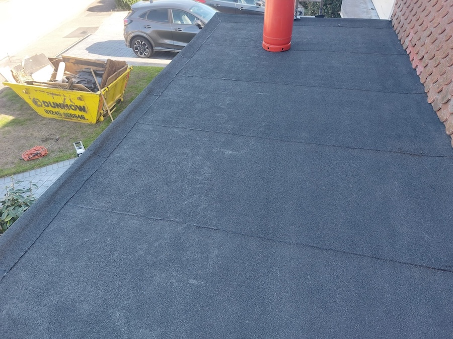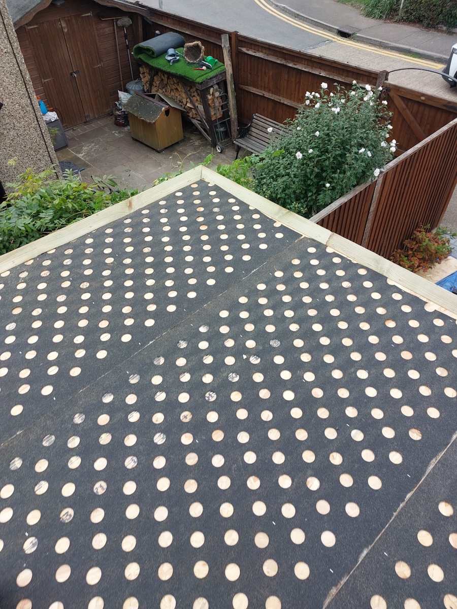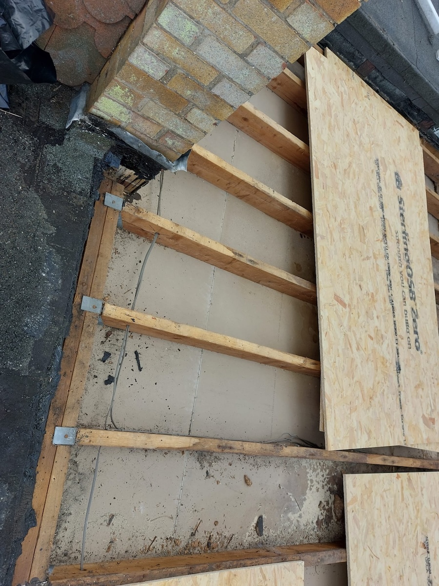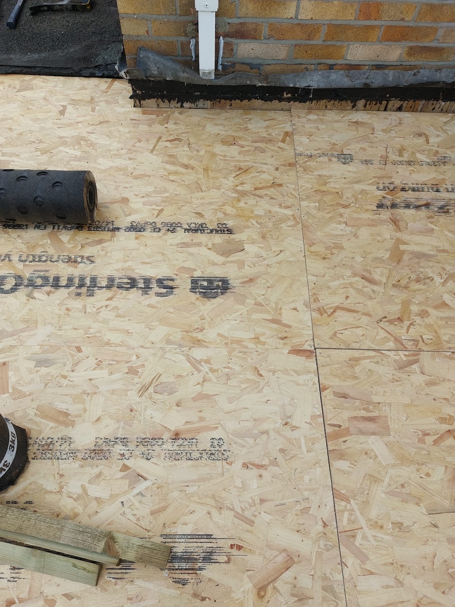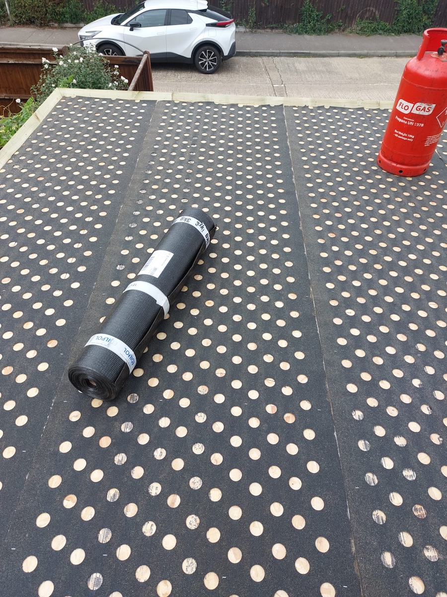 Keenan Roofing were contracted to replace an old failed flat roof in Galleywood, Chelmsford. We stripped up then redecked with an 18mm OSB then built a 3 layer high performance torch on built up felt roof system which we supplied and installed. New roof / roof replacement / strip and relay / flat roof replacement / 3 layer felt roof