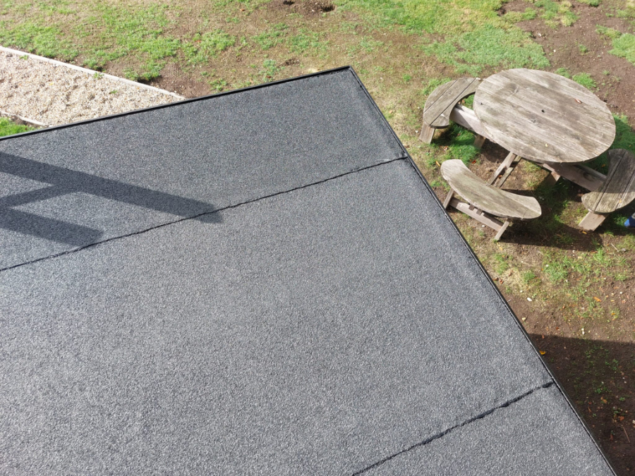 We used a three layer high performance torch on system with a 20 year guarantee. We used a grp trim around the edge to give it a more modern contemporary look.